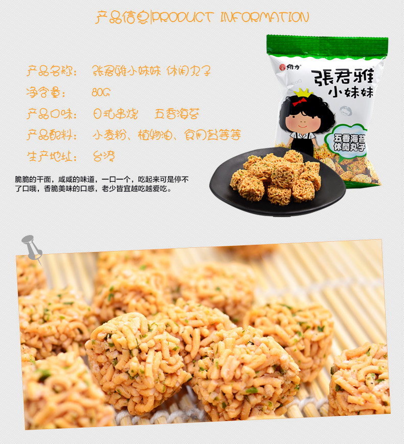 张君雅小妹妹休闲丸子80g*5袋 台湾进口零食膨化食品干脆面小吃