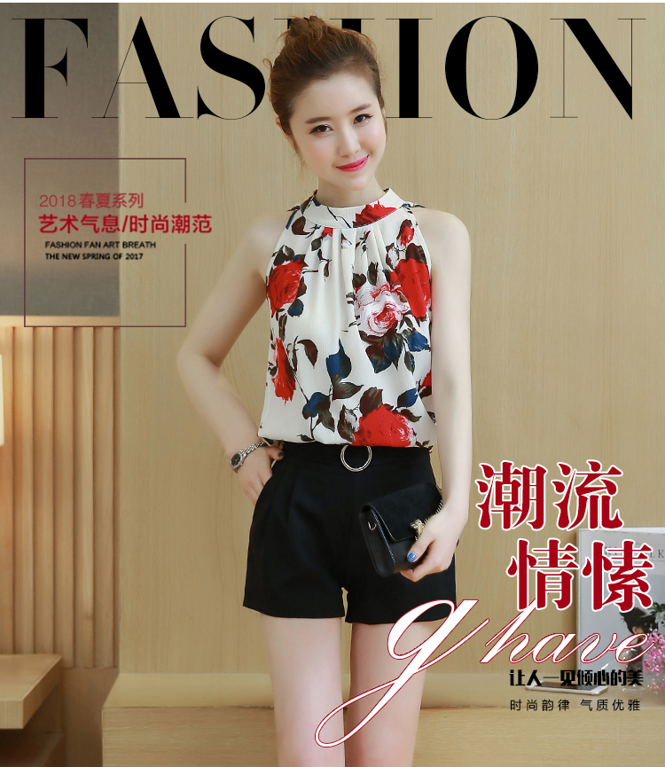 2018春装新款女装立领雪纺衫碎花打底衫上衣服夏装背心短袖t恤潮