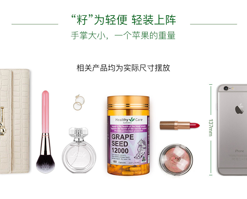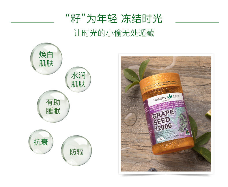 Healthy Care葡萄籽精华胶囊澳洲进口hc美白保健12000mg180粒2瓶